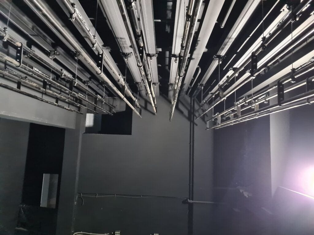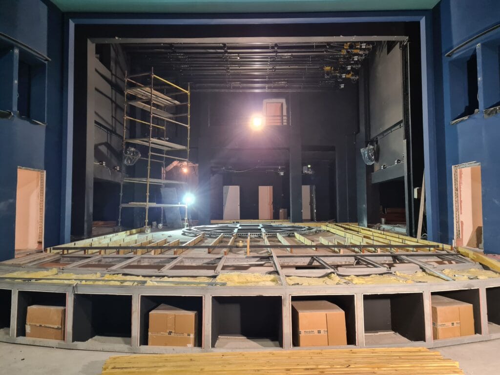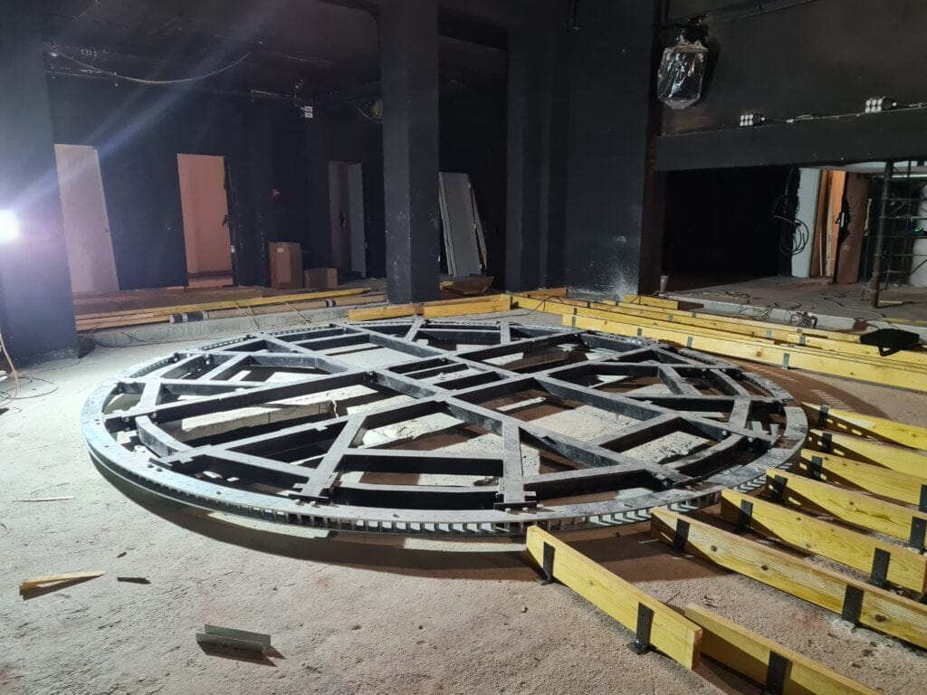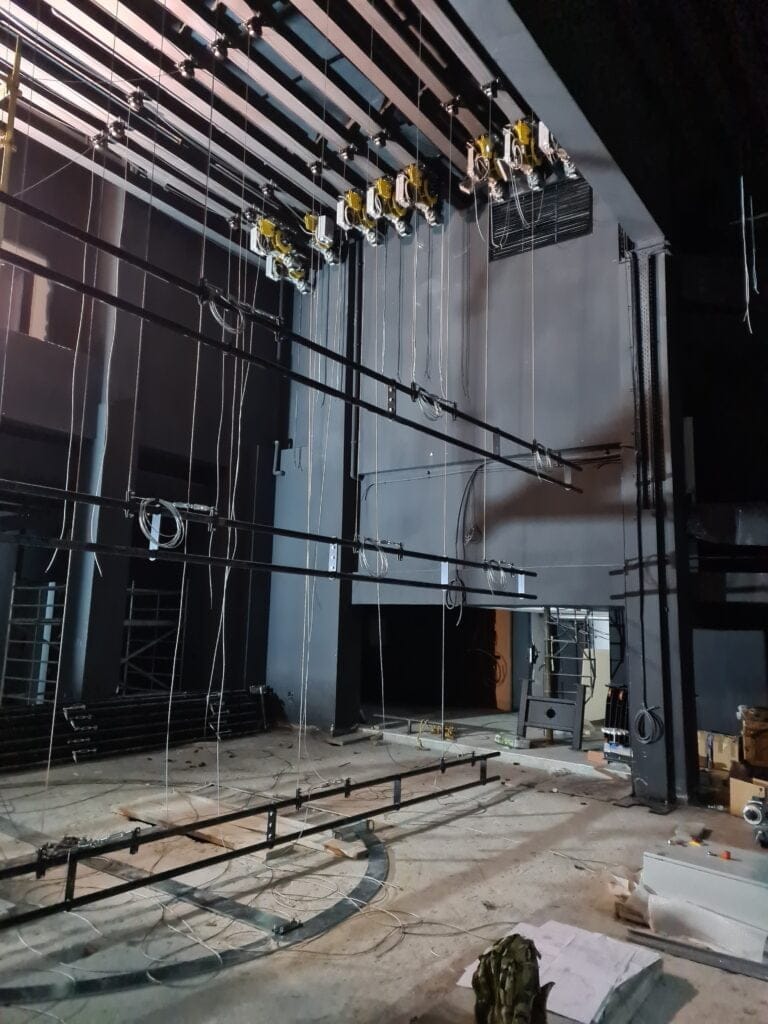 Development of a complete fixed stage system with electric hoists and a mechanically rotatable platform, including a control system.