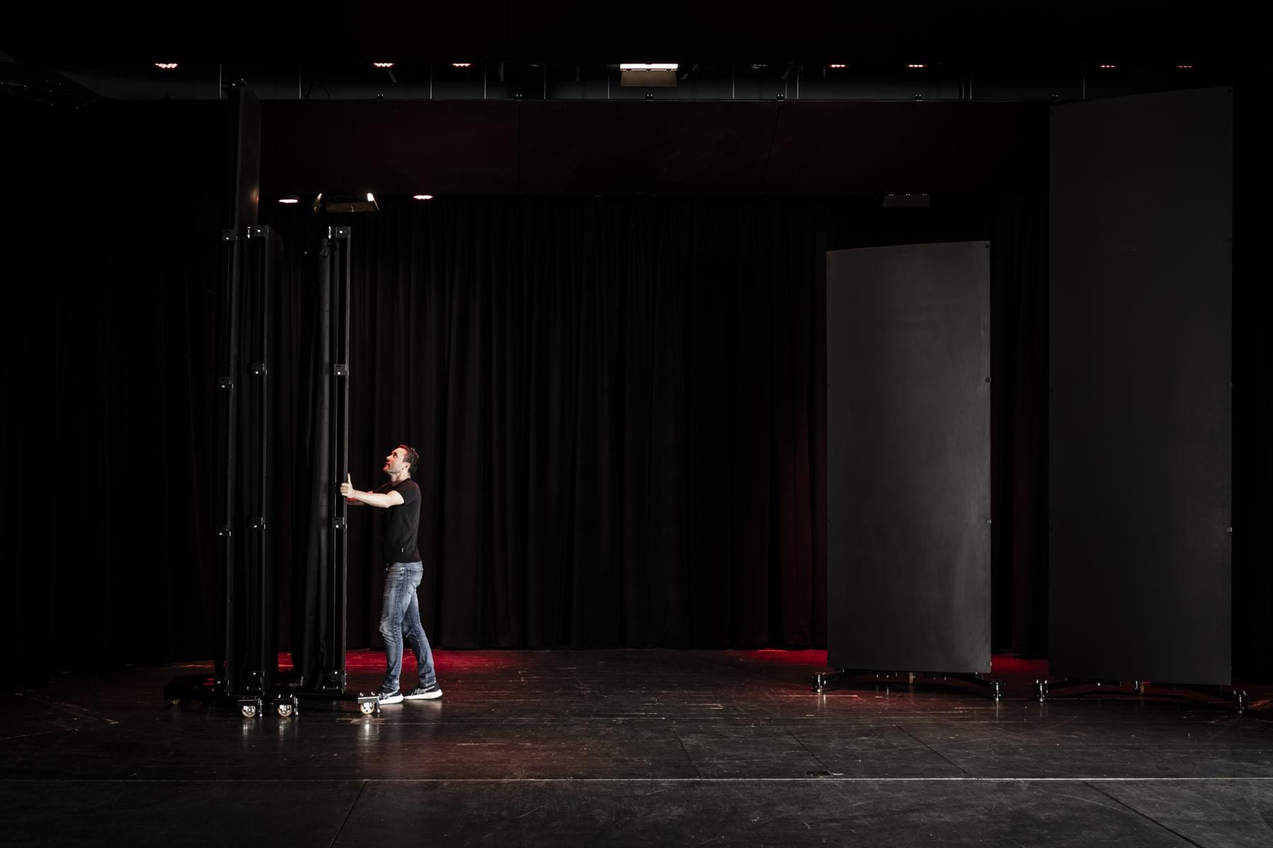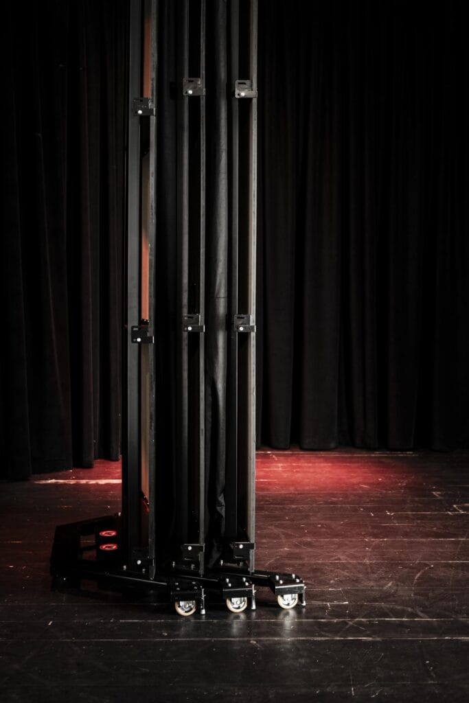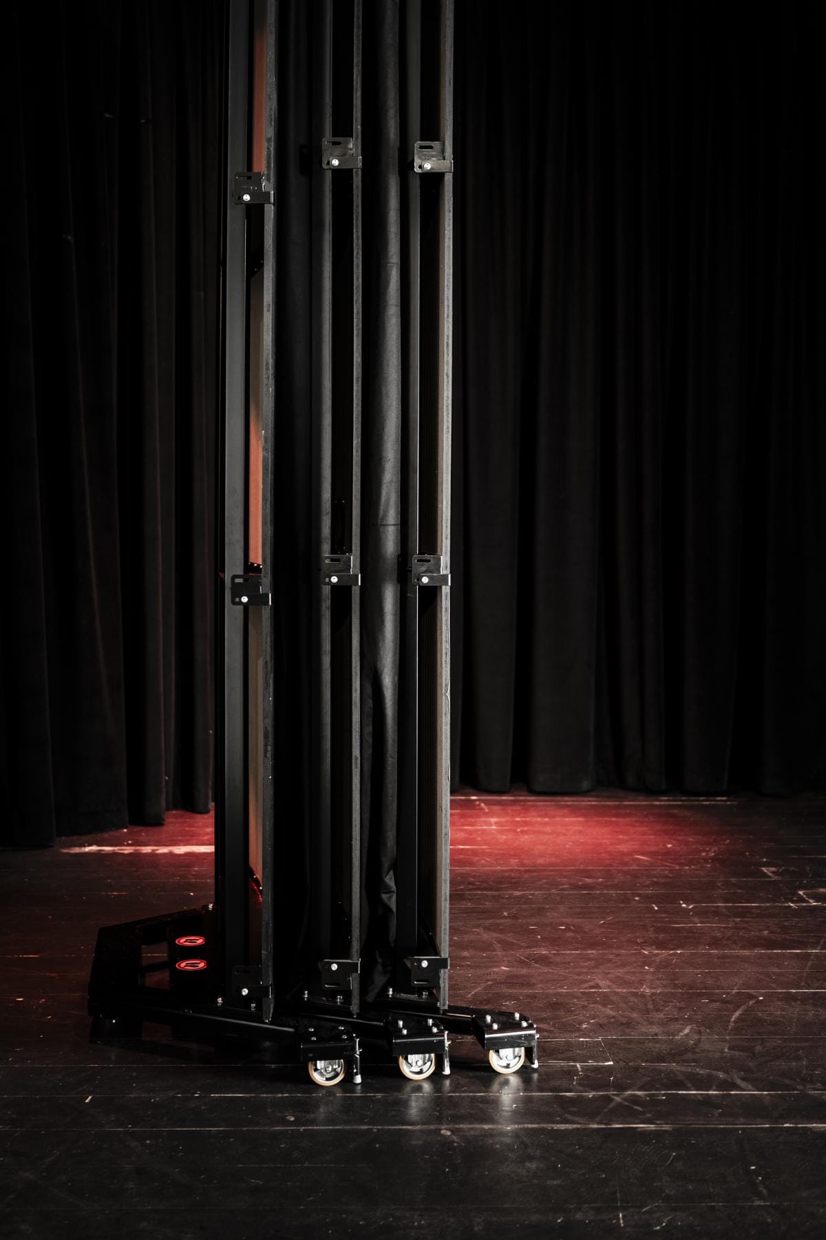 Supply of a complete stagecraft system including pulleys, fixed structures, iron substructure with stairs and storage carts. Additionally, a lighting traverse that retracts into the ceiling of the room was provided, complete with lights and an automated main curtain.