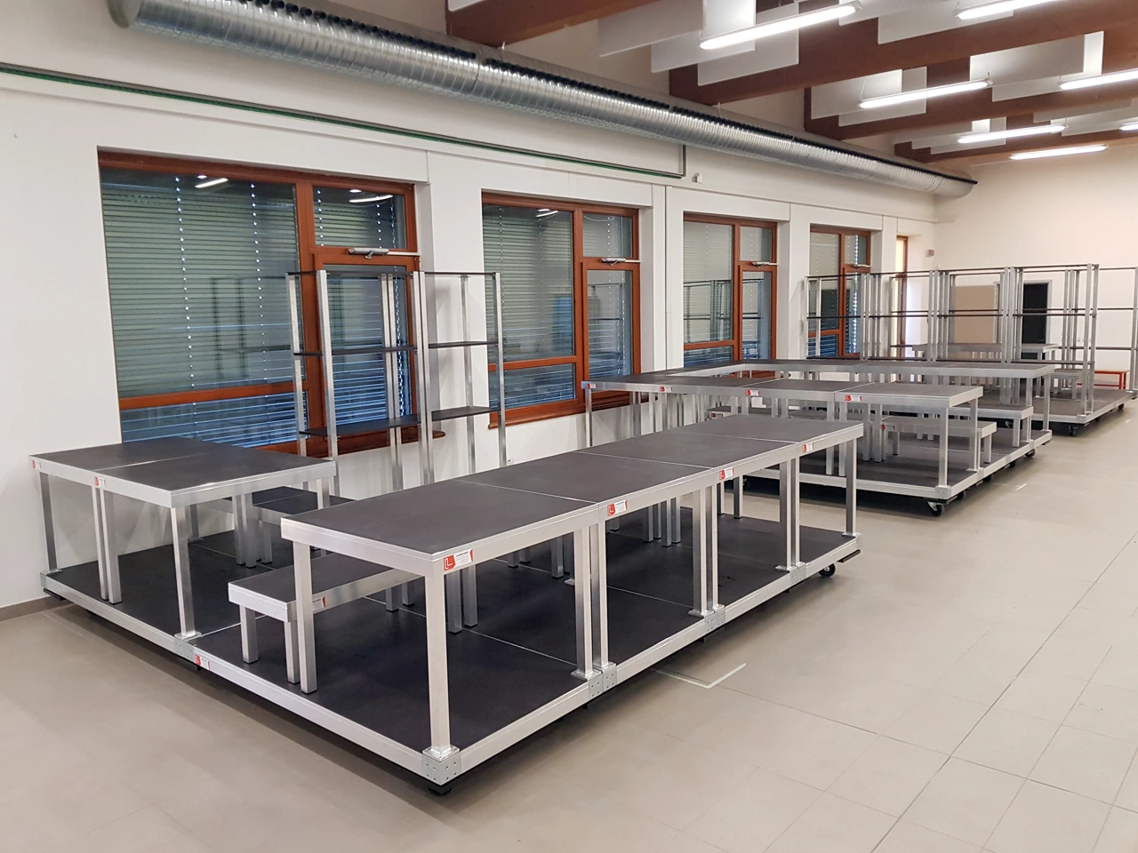 Con le pedane si possono comporre palcoscenici complessi oppure piccole pedane temporanee per concerti, feste ed eventi in generale.