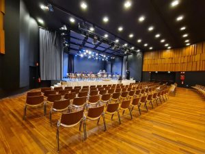 Sanierung eines Theaters mit manuellen Bühnenzügen mit Gegengewichtsanlage, sowie Planung und Installation eines modernen Saalzuges ohne Deckenaufhängung.